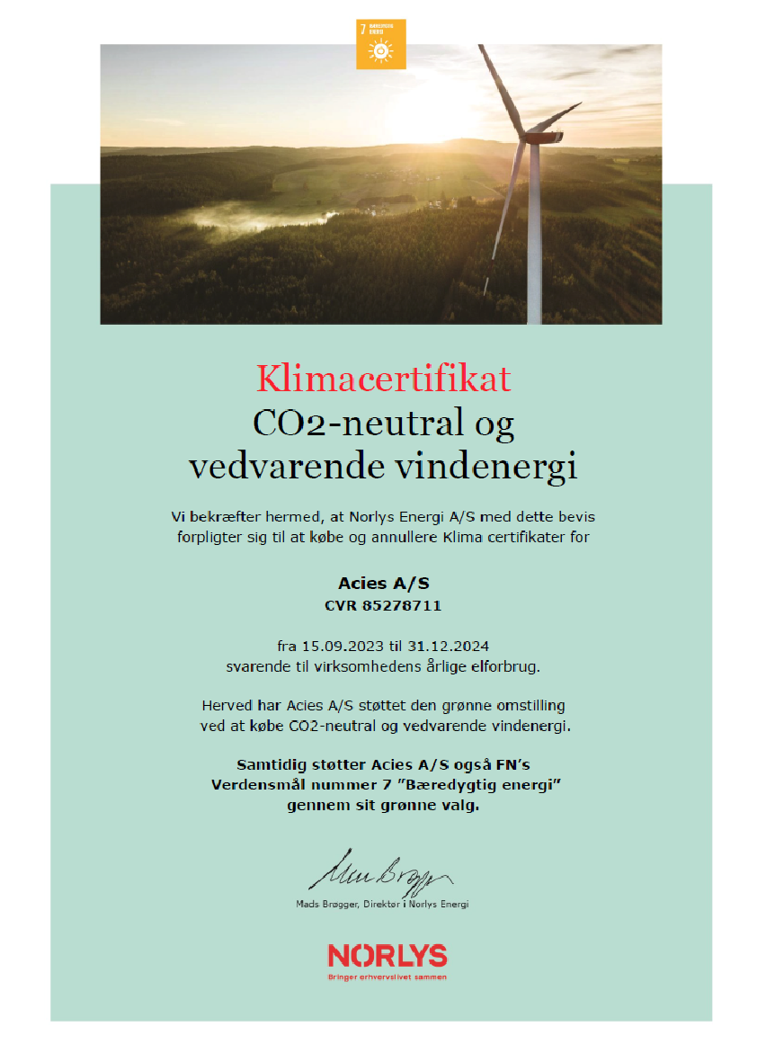 Through deliberate efforts we have reduced our electrical use by 34.4% from 2018 to 2022, and we have chosen to only use Co2 neutral and sustainable energy sources. We have done this to minimize our own environmental impact, and to support our customers in their efforts to make the environmental value chain impact as small as possible. It is good business.